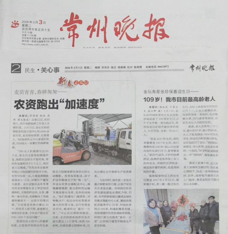 立春已过,农时催人,我市春耕备耕工作进入关键阶段。3月2日,金坛区指前镇稻麦科技示范中心的5000亩麦田里,麦苗郁郁葱葱、长势喜人,飞防服务队正抢抓时机开展田间管理,为小麦追补农肥,田间地头一派繁忙的春耕景象。 “T60无人机载重可达50千克,能全自主按规划路线作业,施肥到边到头不留死角,单次作业量相当于5个人工,省时省力又精准。”市苏合农业服务有限公司农技顾问孙和平介绍,农资早投放一天,小麦返青期就能提前2至3天,对提升产量至关重要。这片试验田去年冬季首次采用智能化全工序压沟式播种机,实现秸秆还田、压条、播种一体化作业,有效解决了传统播种播深不一、出苗不均等问题。“目前麦苗单株分蘖达10个,即将进入拔节期,趁春耕关键期追补尿素,今年亩产稳定在500至600千克没问题!”孙和平信心满满。 稻麦科技示范中心的春耕场景,正是我市供销合作社系统全力保障春耕农资供应的生动缩影。农资保供配送,是守护全年粮食生产的“第一关”。在金坛农资仓储配送中心,满载脲铵氮肥、复合肥料的运输车接连驶出仓库,直奔田间地头,为春耕生产注入“硬核”底气。“我们从2月起就启动了春耕化肥、农药的配送工作,组建专门服务队,对种粮大户、农民合作社等需求量大的经营主体,实行农资直送田间,畅通供应‘最后一公里’。”中心总经理陈倪俊说。目前,全市供销系统库存及在途化肥达1.3万余吨、农药700余吨,后续货源正持续补充,可充分满足全市春耕生产农资需求。 我市进一步加大重点钾肥直供力度,大幅压缩中间贸易环节,让农户实实在在享受实惠。据市供销总社经济发展处副处长周虹介绍,全市供销系统充分发挥县、镇、村三级农资流通服务网络优势,切实扛起农资保供主渠道责任,从三方面发力护航春耕备耕:一是抓实保供稳价,自大年初三起,全市供销社相关企业陆续复工,加紧将小麦返青肥、除草剂下摆至村级网点;溧阳市社化肥保供储备项目成效显著,在尿素、复合肥出厂价普涨的背景下,社有企业苏南农资仍以优惠“老价格”供货,稳价惠民彰显供销担当。二是做优农业社会化服务,推广常州苏合农服“两端联动中间”典型模式,为小农户和新型农业经营主体提供统防统治、追肥喷施等专业化服务,以技术赋能春耕生产。三是强化农技指导,加大绿色农资技物结合培训力度,组织庄稼医生、农技人员深入田间地头查看小麦苗情,推广测土配方施肥、种肥同播,试点开展肥药协同等精准施用技术,手把手指导农户做好田间管理。目前全市供销系统已建成县域农资集采集配中心5家、镇级农资配送服务中心23家、村级农资网点194家,构建起覆盖全域、高效便捷的农资流通服务网络,持续打通为农服务“最后一公里”,以供销力量筑牢粮食生产安全防线。 |